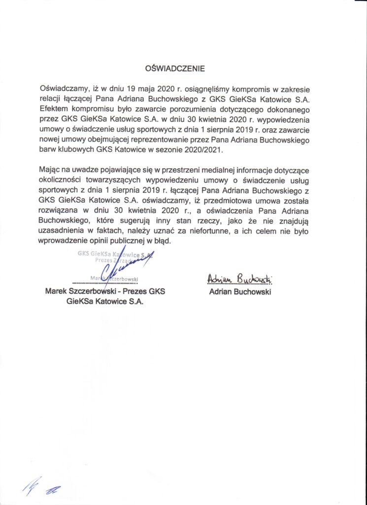 GKS Katowice osiągnął porozumienie z zawodnikiem co do rozliczenia dotychczasowego kontraktu oraz związał się z nim nową umową, która będzie obowiązywała w kolejnym sezonie.