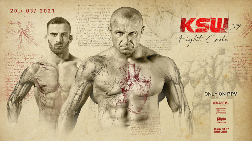 Dokładnie rok od gali KSW 53: Fight Code, która nie odbyła się z powodu pandemii, KSW powraca z wydarzeniem z takim samym podtytułem. KSW 59: Fight Code odbędzie się 20 marca, a w klatce zobaczymy powracającego po dłuższej przerwie Mariusza Pudzianowskiego (13-7, 8 KO) oraz mistrza kategorii koguciej, Antuna Račicia (25-8-1, 13 Sub).