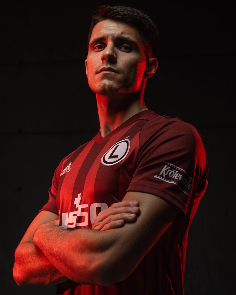 Dotychczasowe trykoty zostały uzupełnione o strój w kolorze czerwonym, który stanowi naturalne dopełnienie klubowych barw. Front koszulki zdobią pionowe pasy w odcieniach krwistej czerwieni i burgundu. W tej samej kolorystyce utrzymane są spodenki i getry, w których zawodnicy wystąpią w meczu z Rakowem Częstochowa. Tradycyjnie, na piersi znajduje się jeden z symboli klubu – czarna „eLka” w kółeczku.